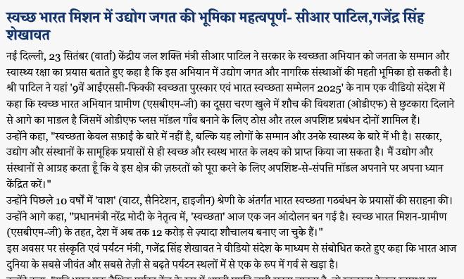 svachchh bhaarat mishan mein udyog jagat kee bhoomika mahatvapoorn - seeaar paatil, gajend...