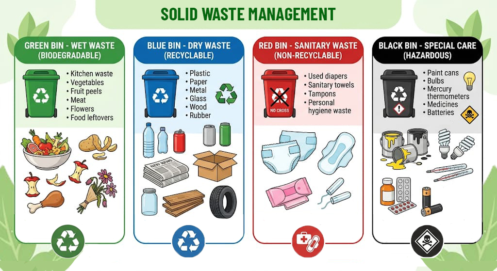 At the heart of the new framework is a simple but transformative requirement: waste must now be segregated into four streams at source—wet waste, dry waste, sanitary waste, and special care waste. This is not a minor procedural change. It is the foundation on which composting, recycling, scientific disposal, and circular economy models depend. If segregation fails, almost every downstream part of the system becomes weaker, costlier, and less efficient.